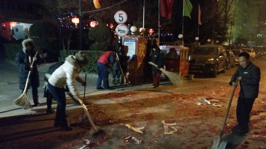 當(dāng)晚,為保證春節(jié)的節(jié)日期間院外煙花炮竹的安全燃放,各項(xiàng)目在院內(nèi)崗?fù)?zhǔn)備了滅火器材,并及時(shí)清掃院內(nèi)的煙花炮竹。業(yè)主用鞭炮來(lái)慶祝新的一年到來(lái),而我們的項(xiàng)目員工為保障項(xiàng)目燃放煙花爆竹的安全,直到農(nóng)歷羊年第一天的凌晨1點(diǎn)多清掃完燃放煙花的現(xiàn)場(chǎng),確定無(wú)隱患后才回家與家人團(tuán)聚。