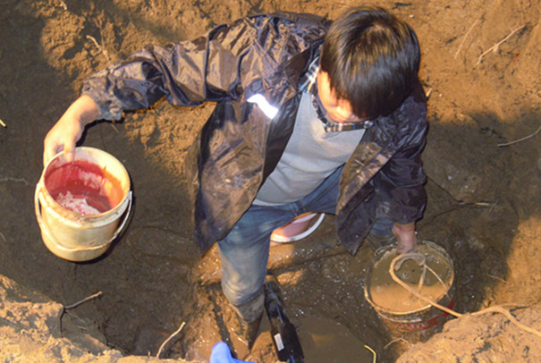 項目部將漏水和檢查情況上報公司領(lǐng)導(dǎo)后,公司領(lǐng)導(dǎo)果斷決定立即展開搶修,總工辦和項目部接到命令立即對現(xiàn)場漏水處進行開挖,公司總經(jīng)理黃建偉、副總經(jīng)理程建軍、公司顧問王保華高度重視親臨現(xiàn)場指導(dǎo),總工辦技術(shù)總監(jiān)李長青、住宅總監(jiān)畢建忠也親臨現(xiàn)場指揮,真武家園項目部陳寶松、楊雙玉、王兵、李文利、張慶元、王寶亮、陳勇、郭永忠、郭純良主動加班搶修,資料館項目部孟勇、央視住宅項目部呂東聞訊也主動加入到搶修工作中。