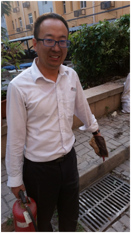 9月30日7:40分左右,音像資料館項(xiàng)目部秩序維護(hù)專業(yè)主管王多嶺在對(duì)大廈外圍進(jìn)行巡視時(shí),突然聞到一股燃燒的焦糊味,他尋著焦糊味發(fā)現(xiàn)是相鄰的7號(hào)院西側(cè)2層一居民家中的廚房窗戶有濃煙冒出并伴有明火,王多嶺立即通知7號(hào)院項(xiàng)目及所屬總局住宅項(xiàng)目部的有關(guān)負(fù)責(zé)人,音像資料館項(xiàng)目部經(jīng)理李長青馬上向公司總經(jīng)理黃建偉作了匯報(bào),黃總及時(shí)趕到現(xiàn)場(chǎng)并組織對(duì)火情進(jìn)行處理。