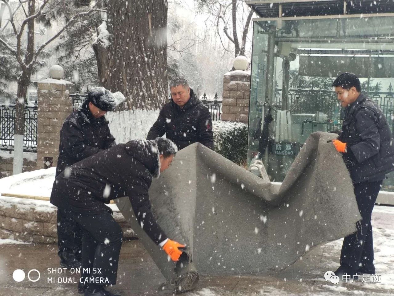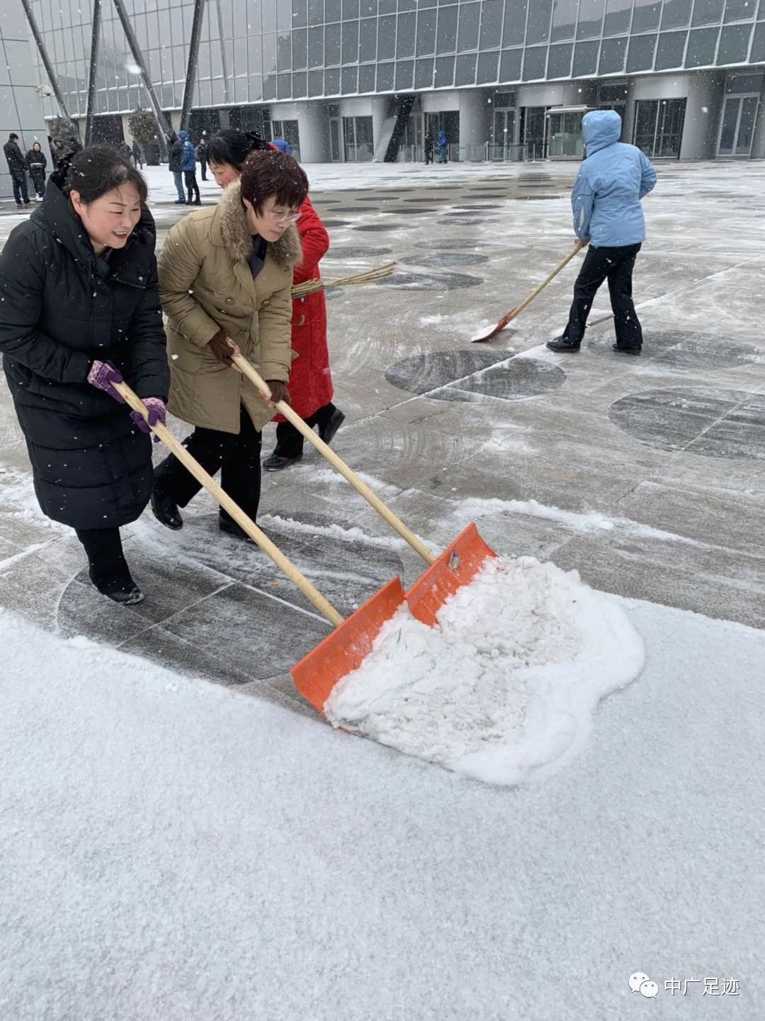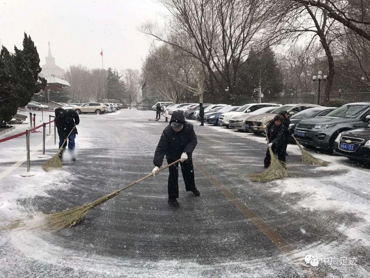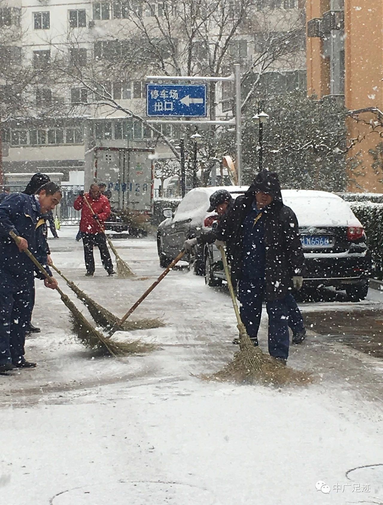 紛紛揚揚的雪一直未停,氣溫持續(xù)下降,各項目員工不畏嚴(yán)寒,始終堅持掃雪鏟冰工作,確保主要通道路面無積雪、無結(jié)冰,很多員工的頭上、身上都覆蓋了一層白雪,大家顧不上撣落身上的雪,只顧關(guān)注路面清理情況。
