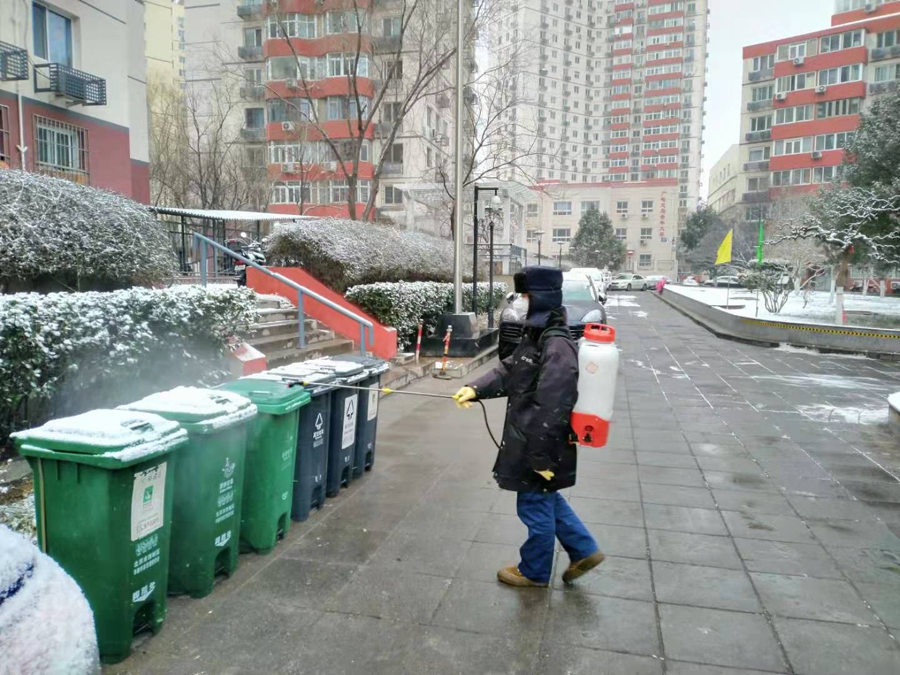 項(xiàng)目部副經(jīng)理陳寶松從春節(jié)開(kāi)始,帶頭沖在前,每天和員工們駐守項(xiàng)目,緊繃防疫之弦,筑牢安心社區(qū),用心守護(hù),精心部署。陳寶松說(shuō),“疫情當(dāng)前,這里就是我們的陣地,堅(jiān)守陣地是我的職責(zé)。每天都在思考哪里還需要做的更好,哪里可能會(huì)出現(xiàn)狀況,不敢放松也不能放松”,言語(yǔ)樸實(shí),行動(dòng)扎實(shí)。在他的帶領(lǐng)下,項(xiàng)目部各項(xiàng)目人員放棄休息,以百倍激情投身防疫工作,楊雙玉帶領(lǐng)的設(shè)備維保專業(yè)員工剛剛放下消毒裝備,又趕去緊急維修、鏟冰掃雪,大家不分你我,攜手并肩。項(xiàng)目負(fù)責(zé)人蘇霞五負(fù)責(zé)的項(xiàng)目比較分散,每天騎車(chē)往返各項(xiàng)目數(shù)次,帶領(lǐng)各項(xiàng)目員工開(kāi)展消毒工作,抓細(xì)抓小,豪不放松。教育交流協(xié)會(huì)項(xiàng)目領(lǐng)班石英豪在東區(qū)項(xiàng)目負(fù)責(zé)人返京隔離期間,勇挑重?fù)?dān),主動(dòng)統(tǒng)籌東區(qū)項(xiàng)目下轄各項(xiàng)目防疫工作,敢擔(dān)當(dāng)善作為,聞令而動(dòng),帶領(lǐng)各項(xiàng)目員工快速落實(shí)各項(xiàng)防疫措施。
