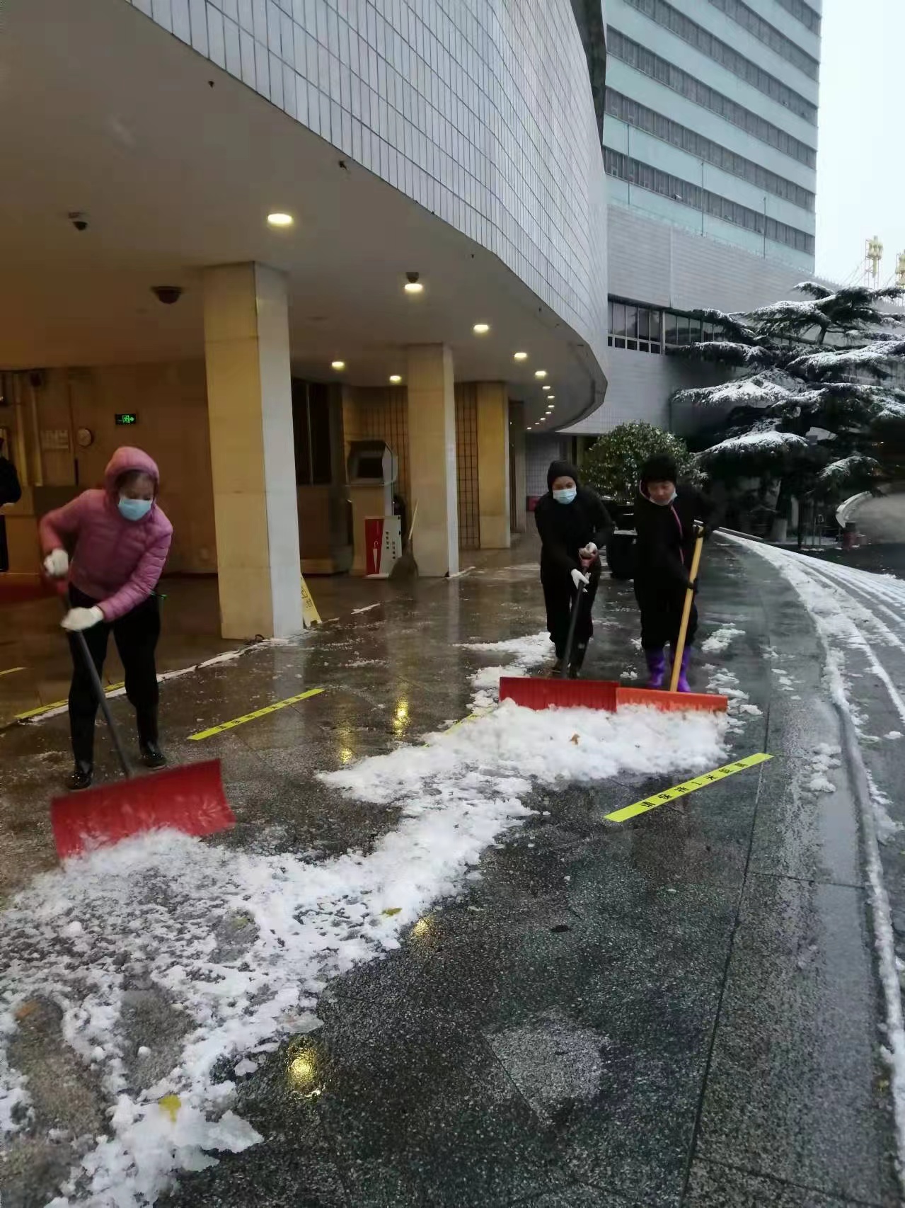 為最大限度地減少降雪天氣對(duì)業(yè)主出行造成的影響,公司安委會(huì)密切關(guān)注氣象預(yù)警,第一時(shí)間轉(zhuǎn)發(fā)寒潮、大風(fēng)、暴雪、道路結(jié)冰黃色預(yù)警信息,在京各項(xiàng)目立即啟動(dòng)雪天應(yīng)急預(yù)案,積極投入到掃雪除冰工作中,在主要通道噴灑融雪劑,樓門入口鋪設(shè)防滑墊,設(shè)立“小心地滑”提示牌,出動(dòng)三百余人次,利用推雪板等各種掃雪工具進(jìn)行清理。