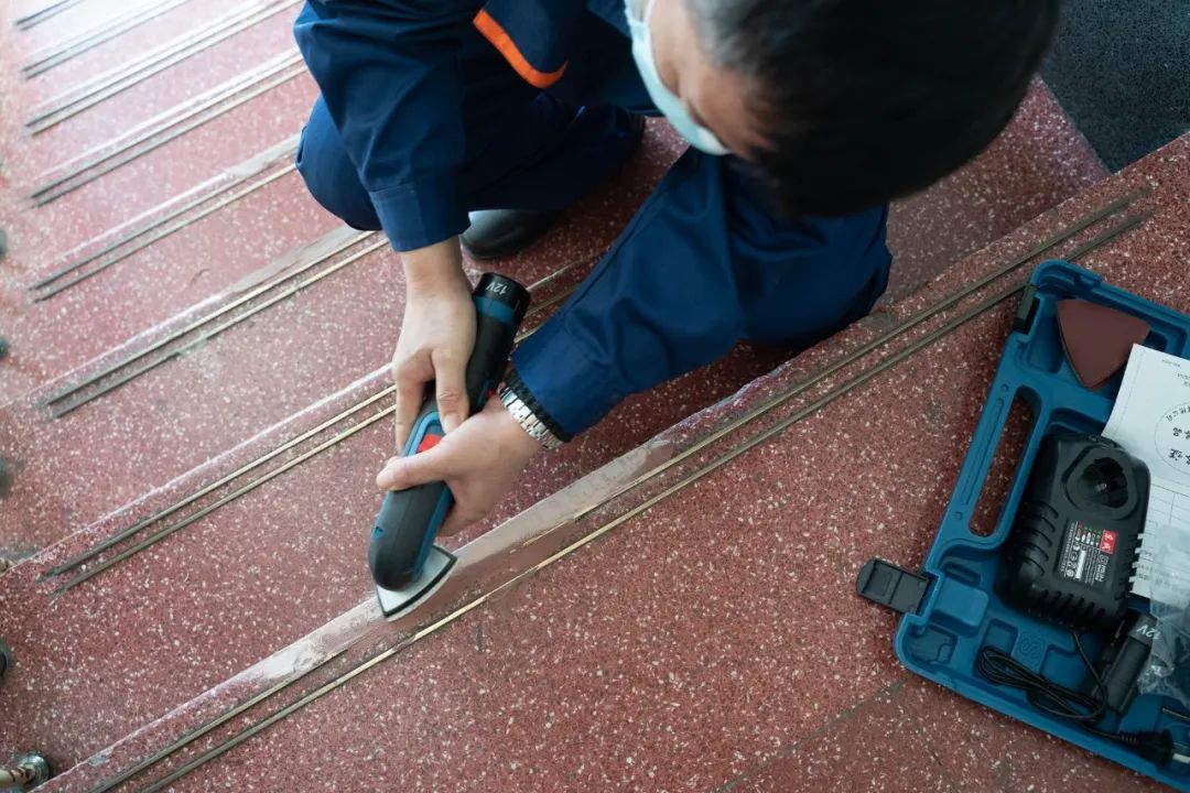 針對(duì)影視之家建成20余年設(shè)備設(shè)施老化,且部分配件已無(wú)法采購(gòu)的情況,項(xiàng)目部集思廣益,創(chuàng)新思維,充分發(fā)揮創(chuàng)新精神,改造部分房間中控柜,重新安裝遙控終端,修復(fù)房間照明控制系統(tǒng);先后使用云石膠、石粉、原子灰、結(jié)構(gòu)膠等材料,修復(fù)公共區(qū)域部分破損、斷裂、邊緣缺失的步行梯臺(tái);在重點(diǎn)公共區(qū)域及客房衛(wèi)生間安裝硅膠防臭地漏,防止蚊蟲(chóng)滋生,降本不降質(zhì),實(shí)現(xiàn)創(chuàng)新增效同頻共振。