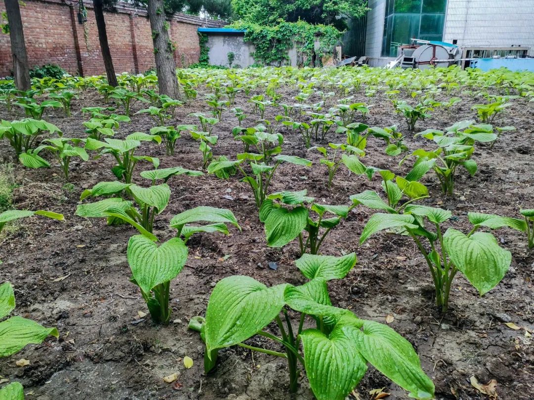 移植活動開始前,綠化專業(yè)人員即在綜合館東北角的“移栽區(qū)”清理雜草、翻整土地,為玉簪移植開拓場地以創(chuàng)造適宜的生存條件。隨著移植活動正式開始,男員工在綜合館西北側(cè)玉簪地進(jìn)行間苗,女員工將移出的玉簪搬運(yùn)至種植區(qū)。大家間苗的間苗、搬運(yùn)的搬運(yùn)、種植的種植,積極主動、相互配合、干的熱火朝天,用時約2個小時共計(jì)移植玉簪400余株,完成60平米的移栽工作。整個過程采用間苗、挖坑、放置玉簪、封土的流水線式作業(yè),最后澆水以提高成活率。