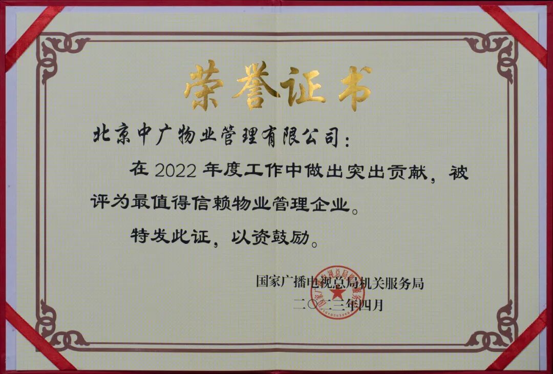 4月20日,國家廣播電視總局機(jī)關(guān)服務(wù)局召開2023年工作會議。北京中廣物業(yè)管理有限公司連續(xù)第十三年榮獲“最值得信賴物業(yè)管理企業(yè)稱號”,公司總經(jīng)理崔立新代表公司上臺領(lǐng)獎。