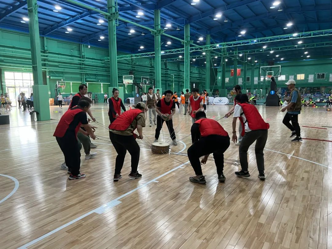 本次總公司“極速挑戰(zhàn)賽”活動(dòng)共設(shè)有“星空漫步”、“蛟龍出?!?、“齊心協(xié)力”、“合縱連橫”四個(gè)項(xiàng)目,既是一場(chǎng)智慧和體力的角逐,更是一場(chǎng)團(tuán)結(jié)和協(xié)作的比拼??偣鞠聦賳挝还灿?jì)11支代表隊(duì)參賽,每支代表隊(duì)10名參賽隊(duì)員,包括6男4女,以參賽選手完成項(xiàng)目所用時(shí)間來(lái)評(píng)判成績(jī),限時(shí)30分鐘。比賽過(guò)程中,公司代表隊(duì)“一二一二...”喊著嘹亮的口號(hào),邁著整齊的步伐,參賽職工相互鼓勁,擰成一股繩,群策群力、團(tuán)結(jié)協(xié)作,全身心地投入到合作比賽中,最終以四個(gè)項(xiàng)目總成績(jī)第一的成績(jī)完成了比賽,展現(xiàn)了公司職工昂揚(yáng)向上、奮勇拼搏的精神風(fēng)貌。