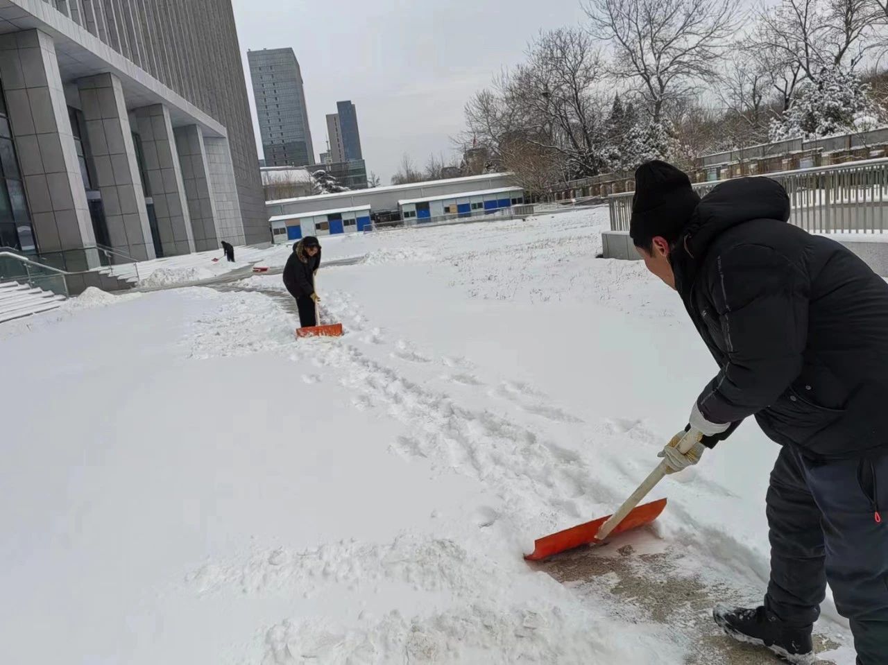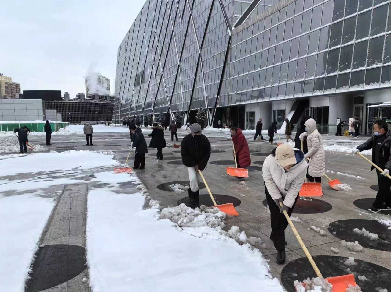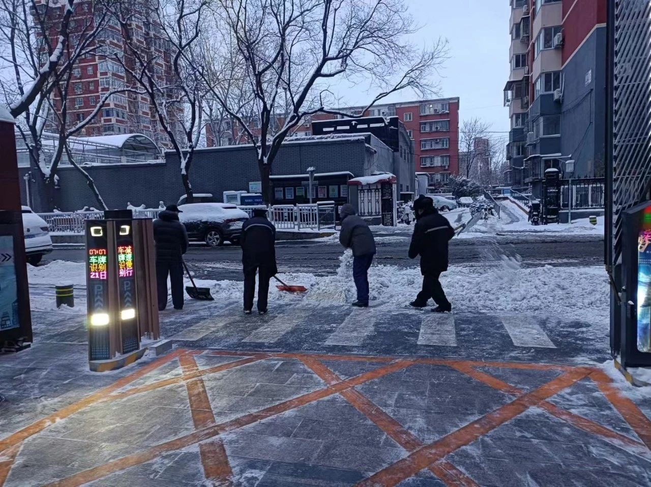 公司在京各項(xiàng)目迅速啟動(dòng)應(yīng)急預(yù)案,按照“隨下隨清”的工作要求,采取人機(jī)結(jié)合的作業(yè)方式,利用掃雪機(jī)、推雪板等各種掃雪工具,以最快的速度清理轄區(qū)主干道路面積雪結(jié)冰,及時(shí)消除降雪帶來(lái)的不利影響,讓原本被積雪覆蓋的道路逐漸變得清晰通暢。同時(shí)各項(xiàng)目在主要通道和樓門口鋪設(shè)防滑地墊。設(shè)備維保專業(yè)加大室內(nèi)室外設(shè)施設(shè)備巡視力度,并做好防凍保暖工作,尤其是加強(qiáng)供熱運(yùn)行保障,確保各項(xiàng)物業(yè)服務(wù)工作正常有序開展。截止2月21日上午,各項(xiàng)目出動(dòng)掃雪除冰應(yīng)急人員累計(jì)700余人次,清掃面積約15萬(wàn)平米。