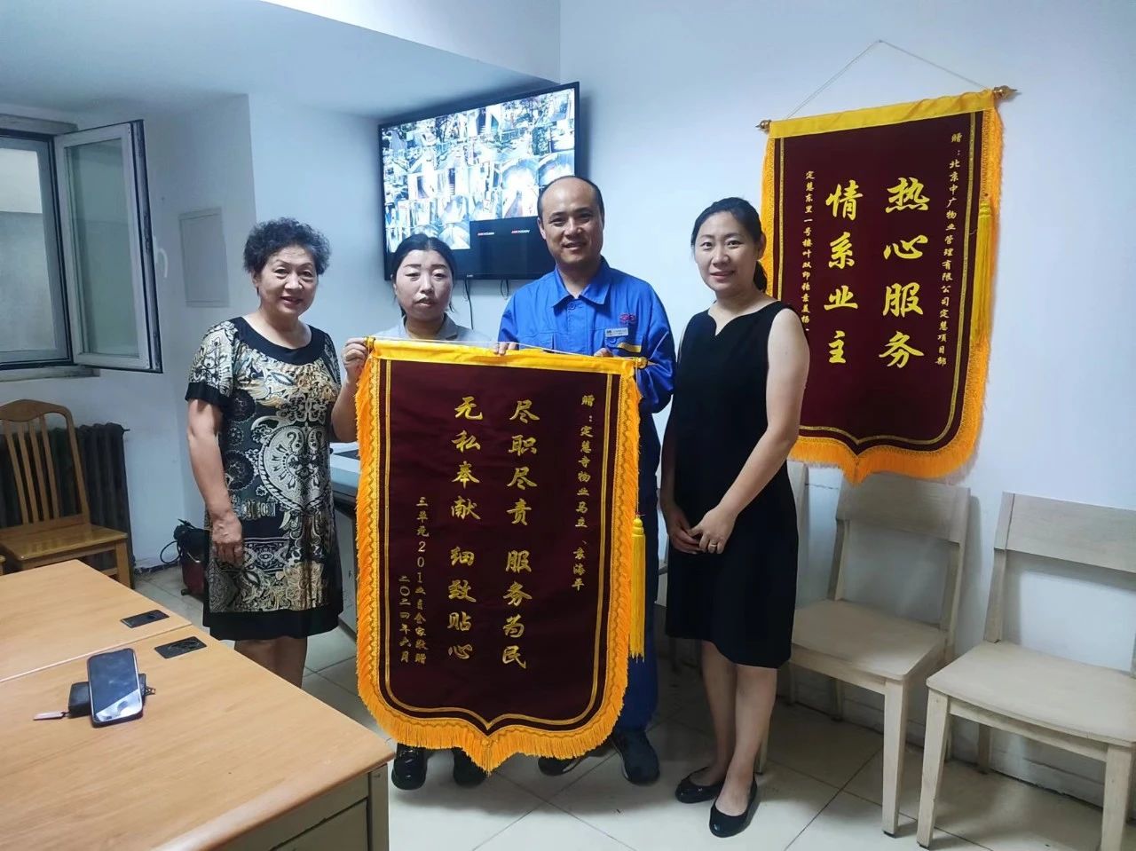 近日,北京中廣物業(yè)管理有限公司總臺住宅項目部一位業(yè)主送來一面 “盡職盡責、服務為民、無私奉獻、細致貼心”錦旗,對定慧項目工作人員在業(yè)主危難時刻施以援手的暖心服務表示衷心的感謝。